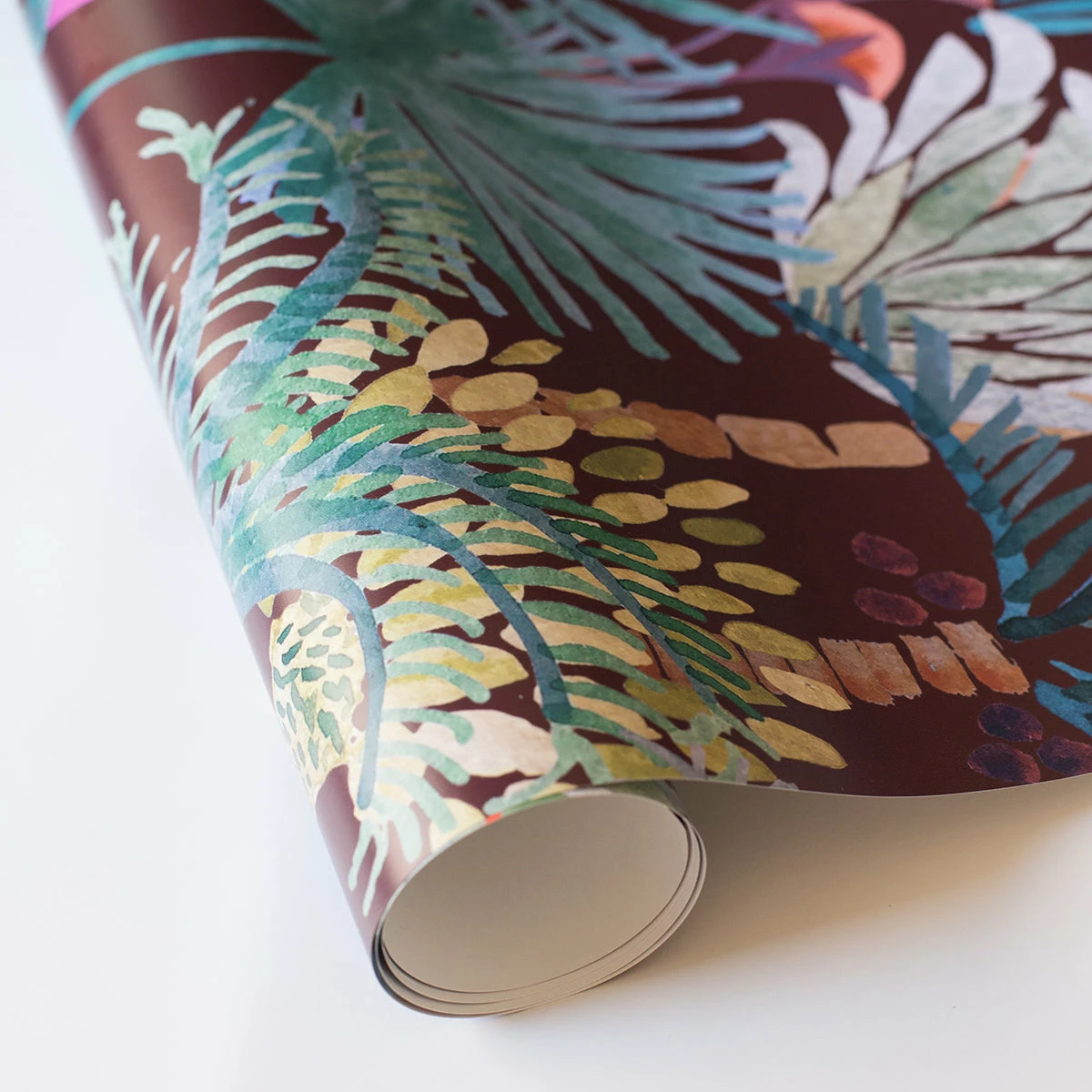 Ready to infuse some color, pattern, and life into your home? Wallpaper is the way to go! Transport yourself with “Vino” with a warm, wine-colored base topped with sprinkles of terra-cotta, fuchsia, sage, and teal green. This wallpaper feels like a mural with the impeccable “painted” detail (that watercolor texture, tho!) and large scale.