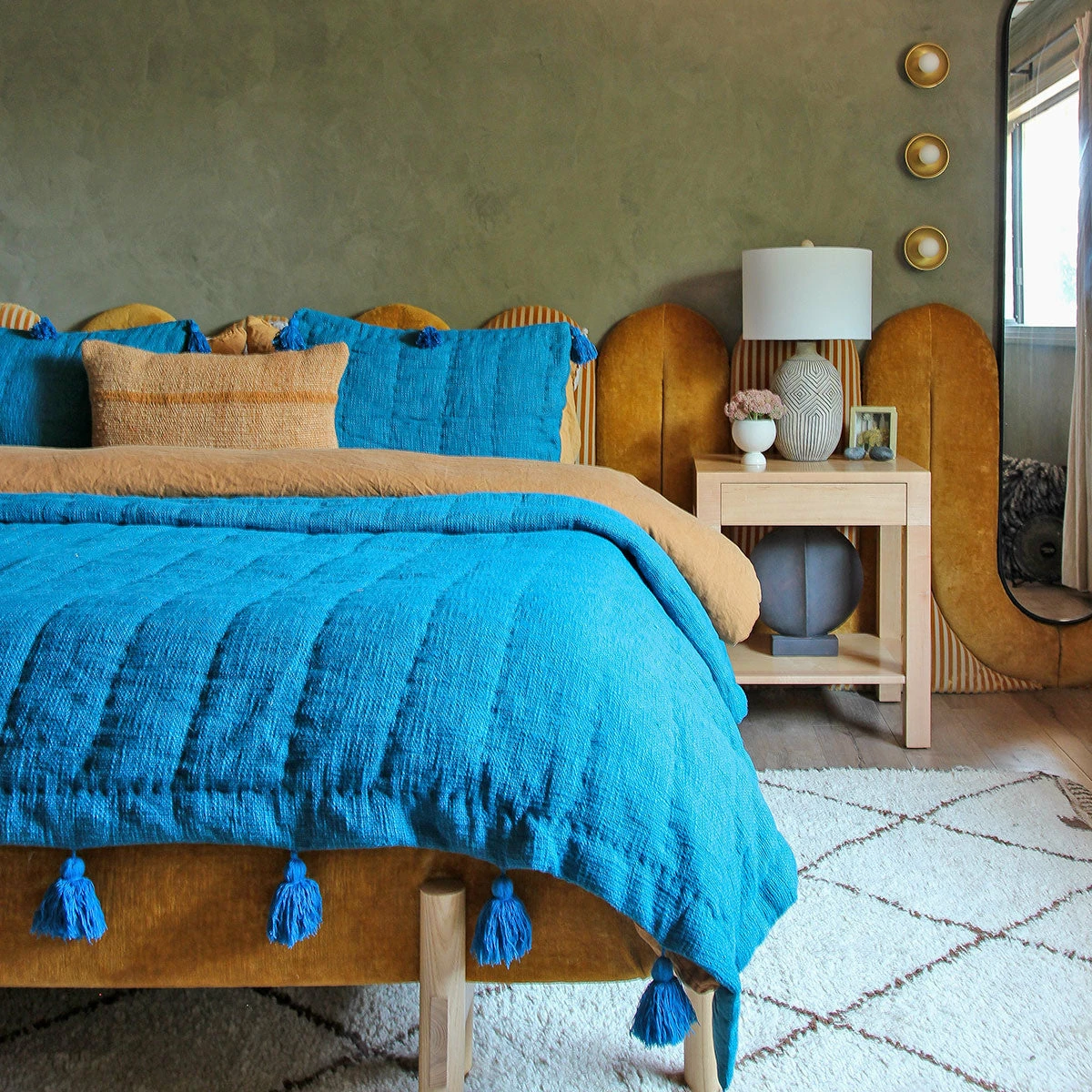 These luxurious, comfy, cotton quilts in some of our favorite shades. Adorned with our favorite accessory, the tassel, this quilt is perfect for layering! Lions sleep hard and live hard – with this bedding, we invite you to find your inner lion and cozy up with these colorful quilts!
