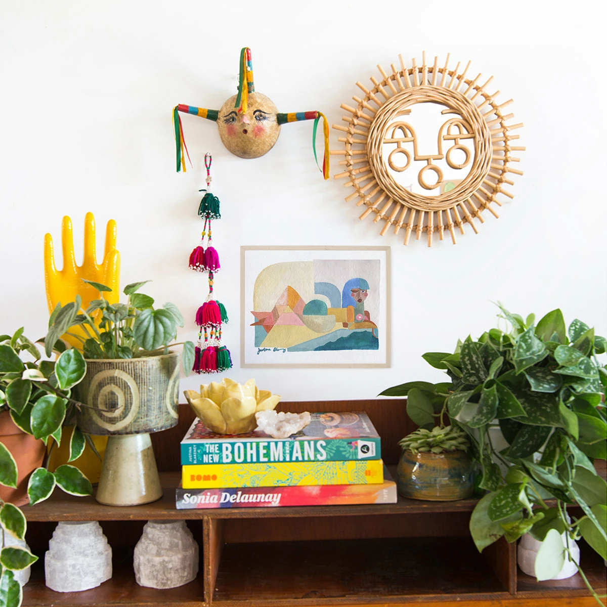 Justina Blakeney is an artist, designer, and founder of Jungalow®. She employs watercolor, gouache, collage, and pen on paper to create her artworks and explores themes of identity and togetherness.
