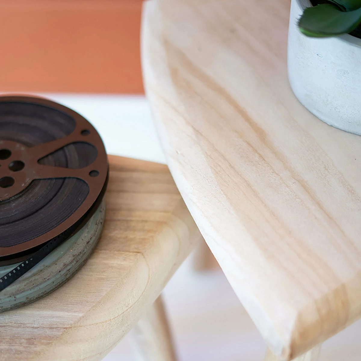 We love how versatile these wooden stools are — They’re perfect for setting down your tray of sips + snacks. Added bonus – they can also be used for plant stands!