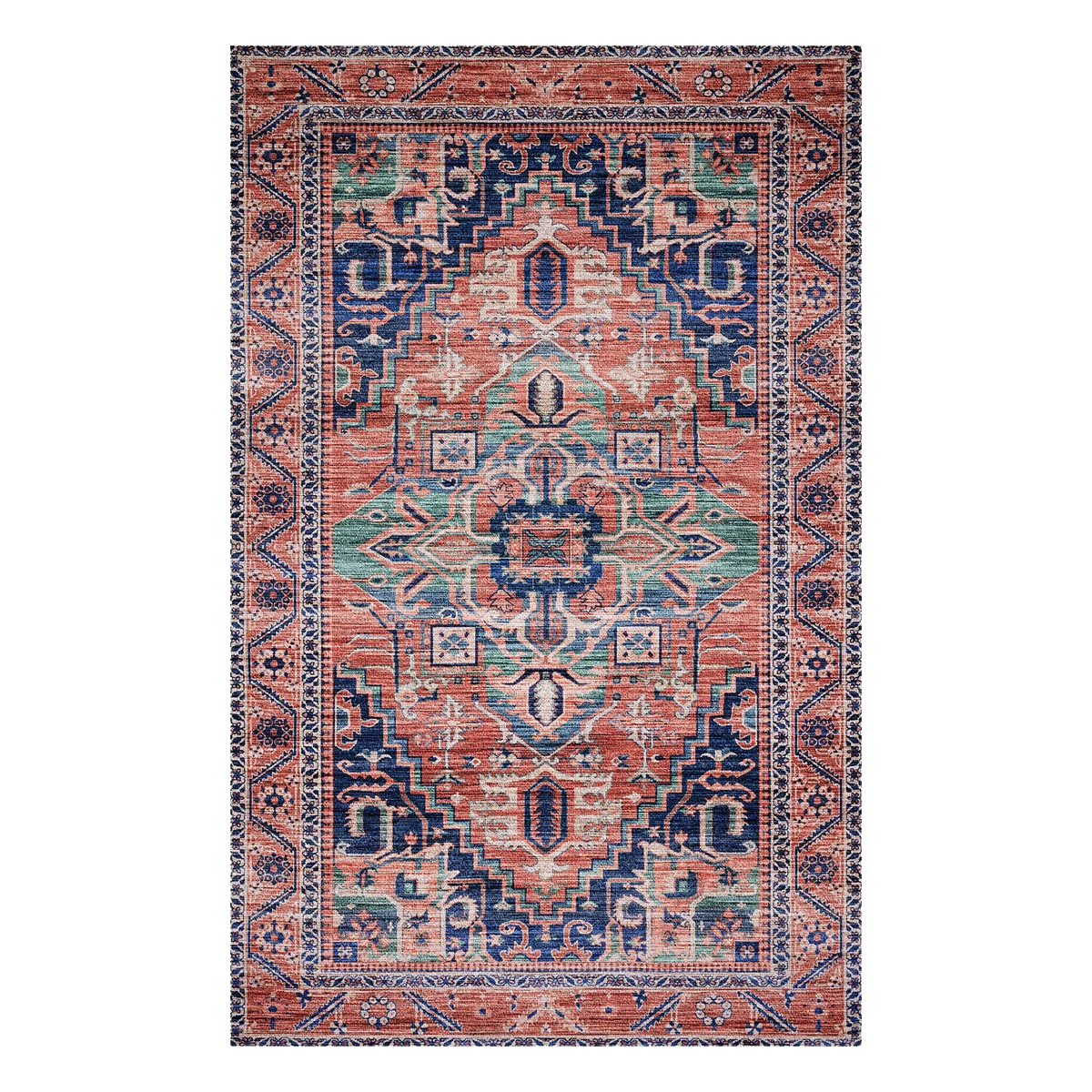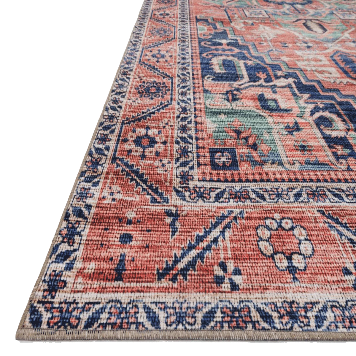 These rugs are spectacularly made & are power loomed and printed in Turkey. We are so feelin’ the deep, rich hues of this one – in fact, it’s Justina’s personal fave from this collection! It’s the ideal statement rug for any color-lovin’ Jungalista with the incredible mix of warm terracotta, deep navy, and muted teal. The design feels timeless, yet fresh, and can transform a neutral space into an inviting, colorful oasis.