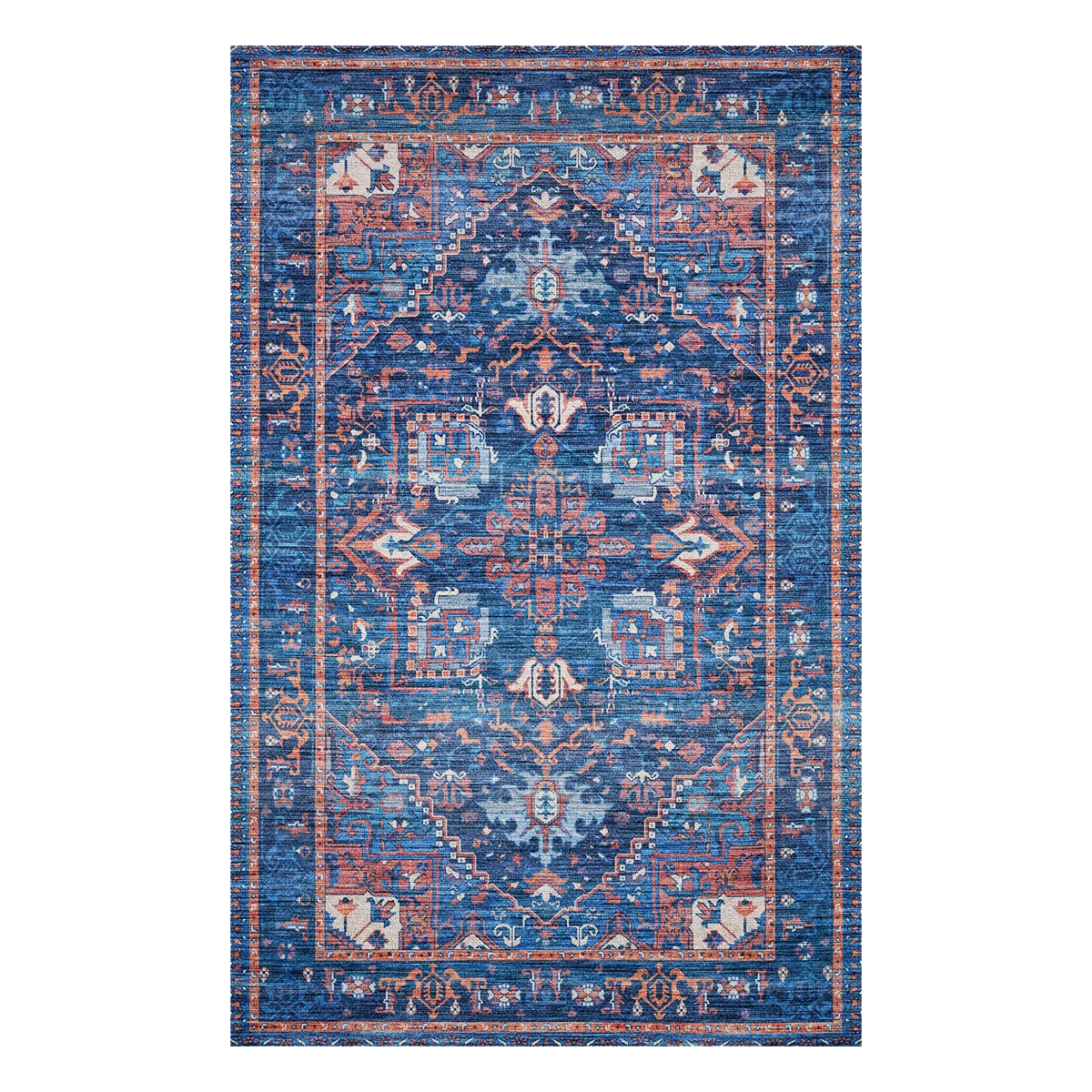 These rugs are spectacularly made & are power loomed and printed in Turkey. We are so feelin’ the deep, rich hues of this one with a contrasting color palette of cool blues & warmer terracotta, orangey hues. It’s the ideal statement rug for any color-lovin’ Jungalista!