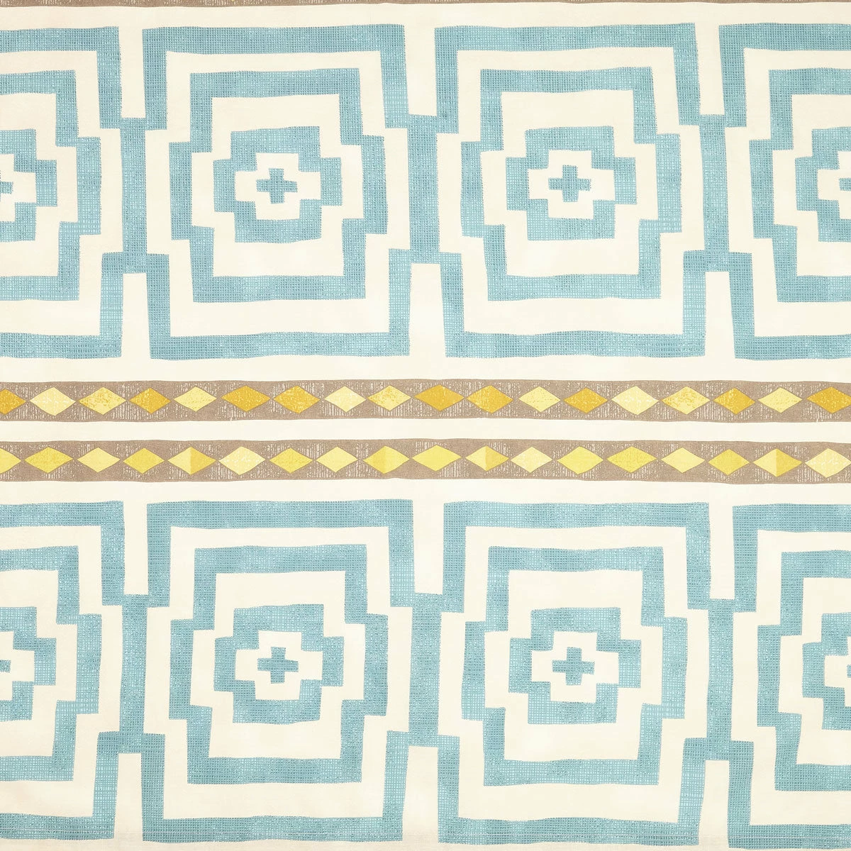 Your bathroom will be feeling so fresh & so clean with our best selling Hypnotic in a lovely shade of sky blue with light green accents. Mix in a cheerful palette that is grounded with a creamy base and taupe detailing. This mesmerizing geometric pattern is our bohotastic take on the classic Greek Key motif.
